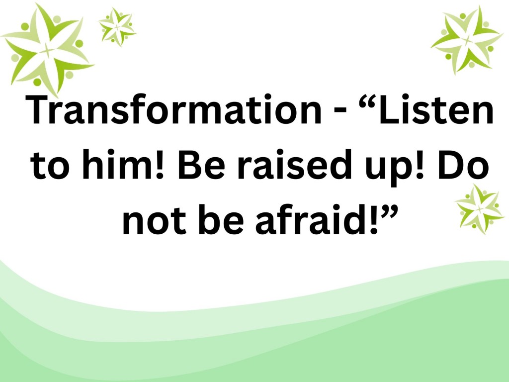 Transformation - Listen to him. Be raised up. Do not be afraid.